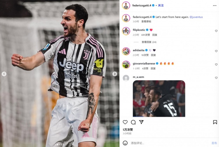 Anh ấy cũng đăng ảnh ăn mừng của mình lên mạng xã hội sau trận đấu với chú thích: "Hãy bắt đầu tập hợp lại từ đây @Juventus!"