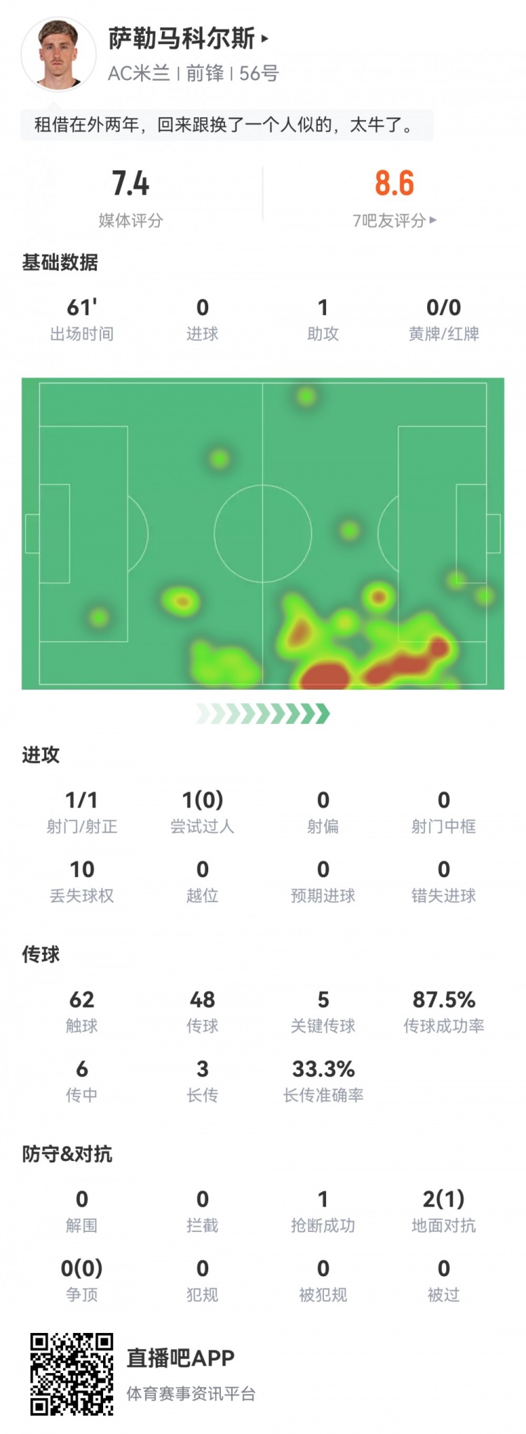 Salemacols bắt đầu cho Milan trong trò chơi này và hỗ trợ. Milan chính thức xác nhận rằng anh được bầu làm cầu thủ giỏi nhất trong đội trong trò chơi này.